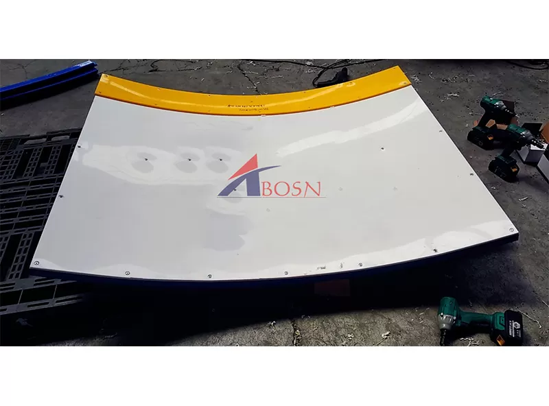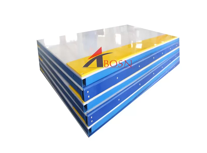 Complete ice railing: White Dasher Facing, Yellow Kickplate, Blue Caprail, Steel frame(Aluminum frame), Screws.